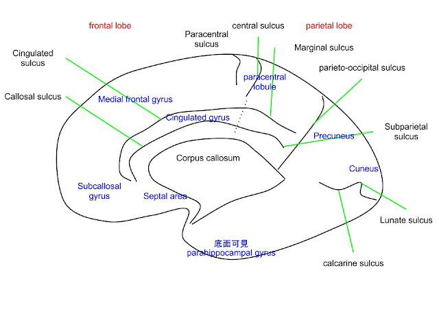 A Parahippocampal gyrus(海馬旁迴):較前面一點,和記憶有關